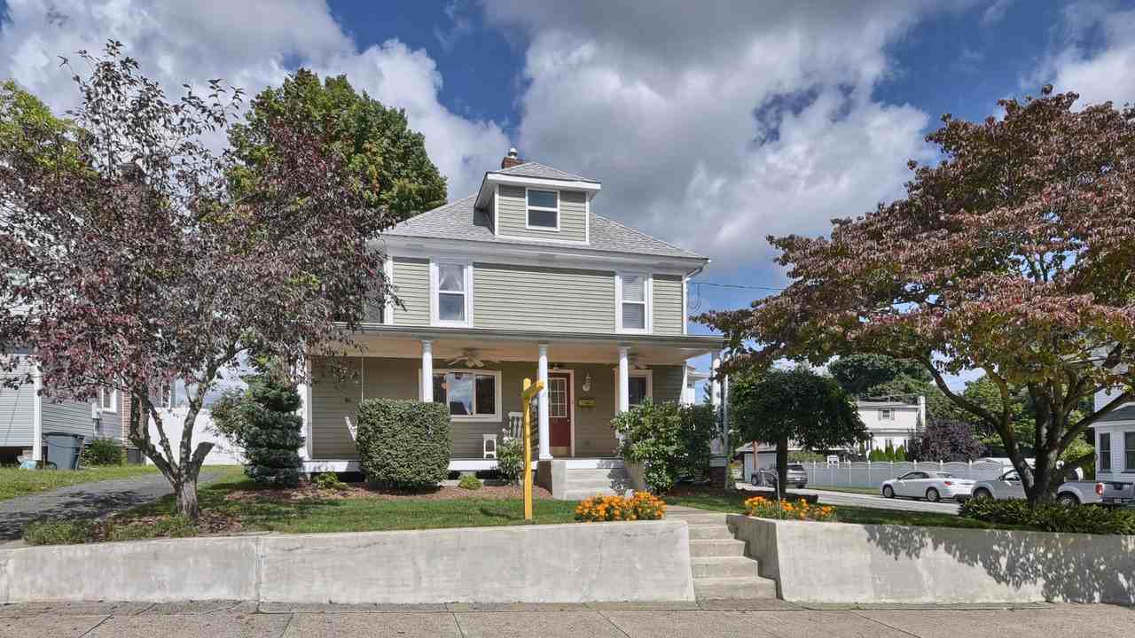 SHORT TERM RENTAL. Charming Colonial w/beautiful open front porch. Nicely maintained inside and out. Entry to Formal LR & Dining Rm. LR w/gas fireplace, sliders to side deck, well manicured grounds,gas grill,ABG Pool, storage shed, 2 garages which are insulated and heated by WBStove. Side entry porch leads to the spacious EIK w/loads of cabinets. Full bath completes the first floor. 2nd fl. 3 generous size bedrooms, full laundry rm + full bath. Full stairs to attic for all your storage needs. Lower level finished w/Fam rm, brick wall perfect for the gas fireplace, vent and gas line already there. Den/Office plus another full bath. Outside entrance to the yard too! Newer front porch decking, updated roof, central air, sprinklers, zone heating. All appliances included. Tenant pays Real Estate Fee 1 month.