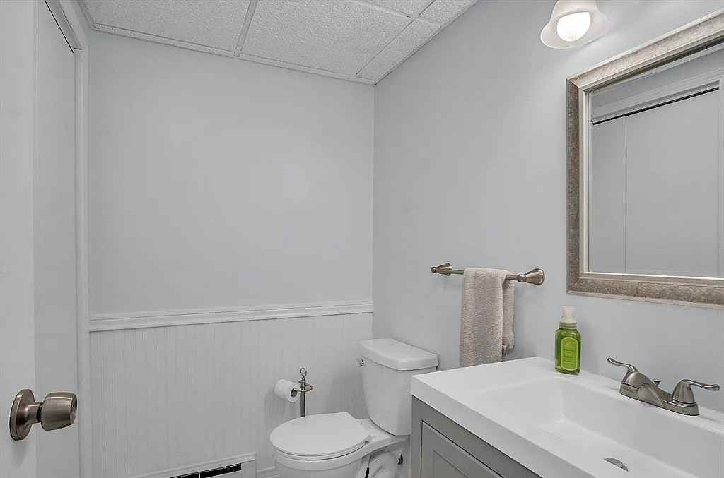 Beautiful & meticulously maintained 2 BR, 1.5 bath end unit townhouse, freshly painted and updated! Enter the spacious first floor living room which flows into large open eat-in kitchen. Sliders leading out to a quiet deck. Upstairs are two spacious bedrooms and full bath, recently updated with new vanities, lighting, and floor. You’ll also find a bonus room in the partially finished basement, currently a family room, exercise room and office. Ample basement and attic storage space. This updated condo features crown molding, living room with recessed lighting, dine-in kitchen, overhead lighting throughout, and ceiling fans in both bedrooms. updates include freshly painted kitchen cabinets and walls and neutral paint throughout