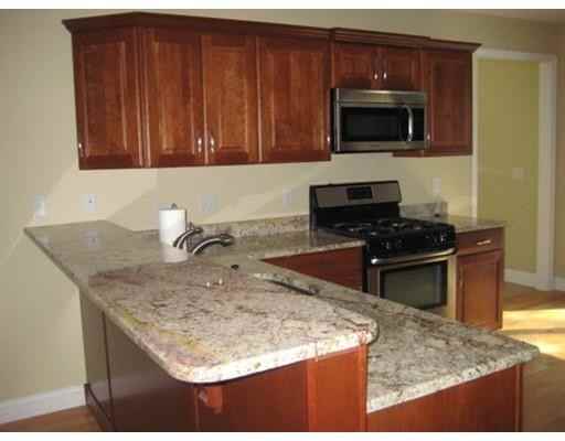 Beautifully Renovated Apartment offers Large family room, Two Carpeted bedrooms with over sized closets one with two closets, Office with Hardwood, Granite Kitchen with Cherry Cabinets and Stainless Steel Appliances, Breakfast Bar, Hardwood Flooring and Slider to back Deck overlooking professional landscaped large yard. Dining Room is open to Kitchen with Hardwood. Both Baths offers Granite and Tile Flooring. Half Baths includes Washer/Dryer Hook-up. Spacious Closets, Pull Down Stairs to Attic for extra Storage. Enjoy driving into your garage and walking up private stairs. Dead end Street, Great location, minutes to Commuter Rail.