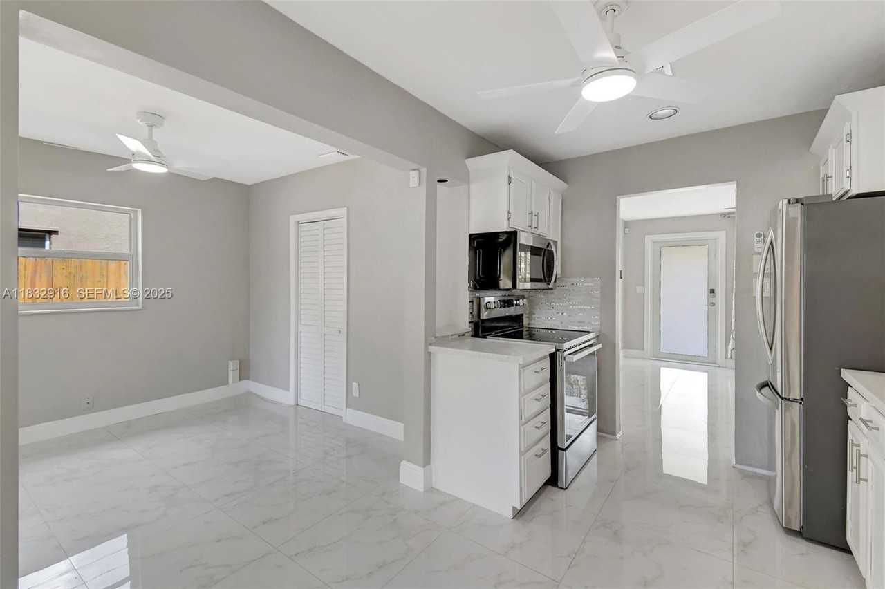This spacious 3-bedroom, 2-bath single-family home includes an additional room perfect as a 4th bedroom or home office. Located in a quiet, family-friendly neighborhood, it features a bright layout with large windows, separate living room, covered patio deck ideal for gatherings, and a fully fenced backyard with a large storage shed. Freshly painted, with in-home laundry, stainless-steel appliances, hurricane-impact windows, and a 4-car driveway....