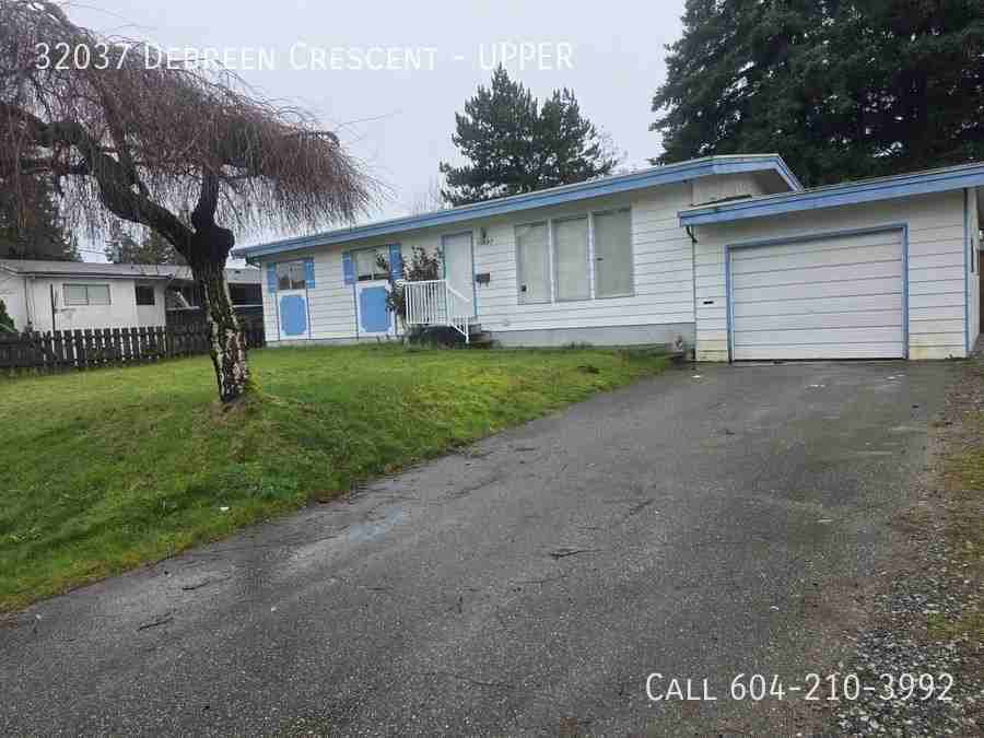 Pets: 1 Small Pet w/Approval No Smoking Utilities: Tenant to Pay 60% Available: Now One Year Lease Security Deposit: Half Months Rent Pet Deposit: Half Months Rent Main floor of home with it's own laundry. Fridge, Stove, dishwasher plus washer and dryer. Tub/shower has been updated. A small pet would be considered. Ace Agencies rental management a division of Tribe mgmt Inc. Please call Ace Property Management at 604-853-2718- Ext-1 to book a viewing. Reference the address: “32037 Debreen Cres - UPPER"