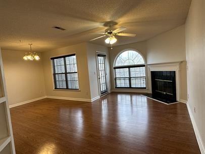 2 bedroom 2 bath home with carpet and central air with a fireplace