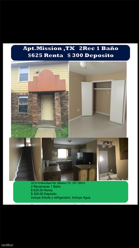 (?• ?? ?•) HERMOSOS DEPARTAMENTO EN MOOREFIELD Y MILLA 2 REMODELADO 3210 N Moorefield Rd, Mission, TX 78574 esquina con Milla 2 2 RECAMARAS 1 1/2 BAÑOS EN DOS PLANTAS $ 625.00 RENTA $ 300.00 deposito incluye estufa y refrigerador se entregan recien reparados y pintados disponible ya incluye el agua (956) 414-1737 solo llamadas no textos new millennium administracion de propiedades contamos con equipo de mantenimiento para cualquier problema ya que contamos con mas de 200 departamentos en el valle de texas edinburg, mission, donna, weslaco por favor . . .. . . No se permite que utilicen drogas , tengan mascotas o hacer mucho ruido. Solo LLamadas Telefonicas por Favor LLAMENOS AL 956-414-1737 Accepts Section 8.