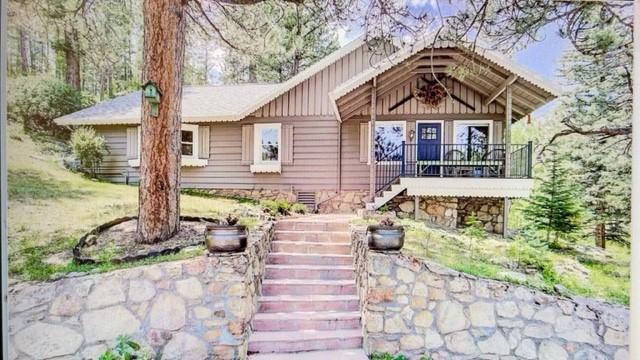 Beautiful high-end, fully updated 3 bed / 2 bath home on idyllic Upper Bear Creek Road with creek views. Fantastic location, 4 Minutes to Evergreen Lake / 6 minutes to Downtown Evergreen / 35 minutes to Denver Union Station. Close to the main roads for commuters but just far enough from the action that it's peaceful. The photos speak for themselves, this home has a ton of character. Walk into the large living room with a beautiful gas fireplace for the ideal mountain ambiance. The living room is quite spacious and has ample room for setting up the space in a way that is perfect for you. Abundant natural light pours through large picturesque windows. The kitchen/dining room is incredibly spacious too, beautifully updated, and comes furnished with an oversized custom island and matching buffet table. The primary bedroom has a walk-in closet and an en-suite bathroom that is exceptional. There are two additional bedrooms and a second bathroom with two sinks, and a shower. The laundry room is well designed with additional storage space and functions well as a mudroom. The outdoor space is just as lovely as the home itself. The back deck and hidden garden are nestled in a boulder outcropping. The side deck is surrounded by a small aspen grove. In the spring, summer, and fall this property is lush. Lots of wildlife visitors and bird watching. There is not a fully fenced-in yard. Detached two-car garage with ample storage space. To schedule a showing for this property please complete a rental application at www gatehousepropertiescolorado com Gatehouse Properties 303-674-4300