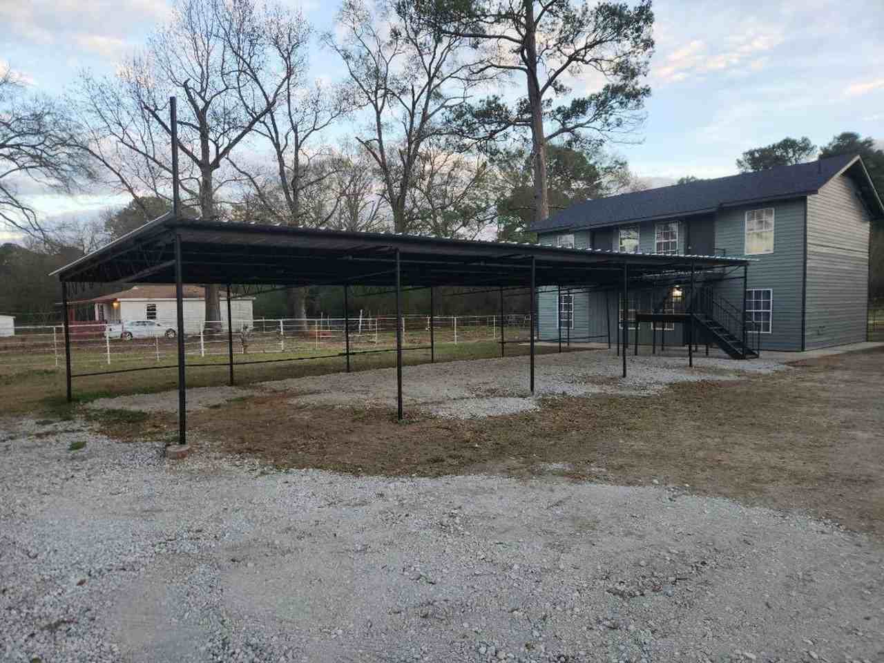 Outside of the city location, but close enough to be convenient! Completely renovated in December 2025 and looking for the very first resident! Covered parking next to unit. Country setting on a very large lot. We take care of the lawn maintenance along with the water and trash pick-up. 2 bedroom 2 bathroom with 1000 SF. Each bedroom has its own private bathroom with walk-in shower. Kitchen features new cabinets, countertops, refrigerator and range/oven. Open concept living area with remote bedrooms.