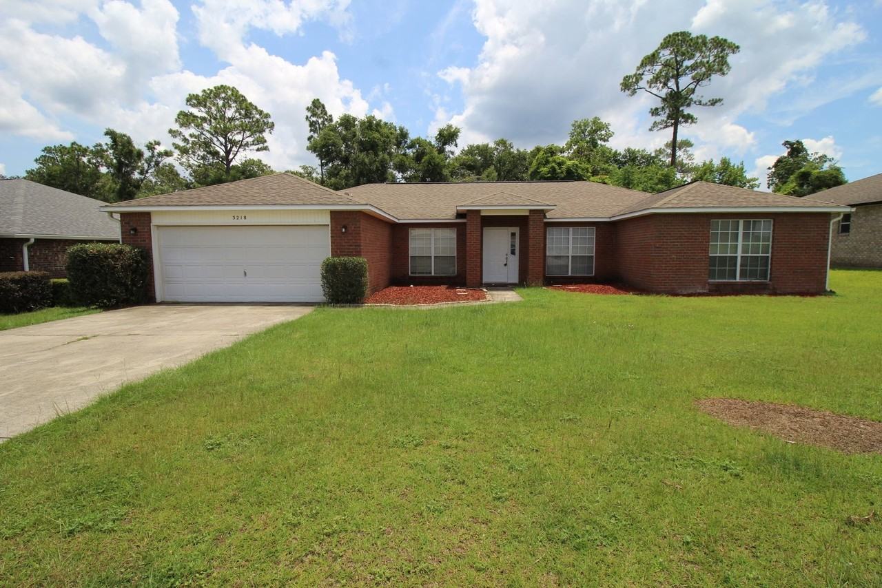 Beautiful 4 bedroom 2 bathroom home located in the Magnolia Lake Estates neighborhood in Cantonment close to 9 Mile Rd and Chemstrand. Just minutes from UWF and NFCU. This home boasts over 2000 sqft of living space with a nice wooden deck in the back looking out into the privacy fenced backyard. On either side of the foyer you have the formal dining room and a flex space that can be an office, den, or playroom. The eat in kitchen features nice black appliances (built-in microwave, stove, dishwasher, and fridge), island, and pantry. Spacious primary bedroom suite is carpeted and offers a ceiling fan, and a private bathroom with a two sink vanity, garden tub, separate shower, and walk-in closet. Three additional carpeted bedrooms share a full bathroom with a tub/shower combo. Indoor laundry room with hookups available. The large deck looks out into the private fenced-in backyard. This home is pet friendly with owner approval and a $250 non-refundable pet fee per pet. Ready for move-in! This home offers a 1/2 off security deposit for active duty military.