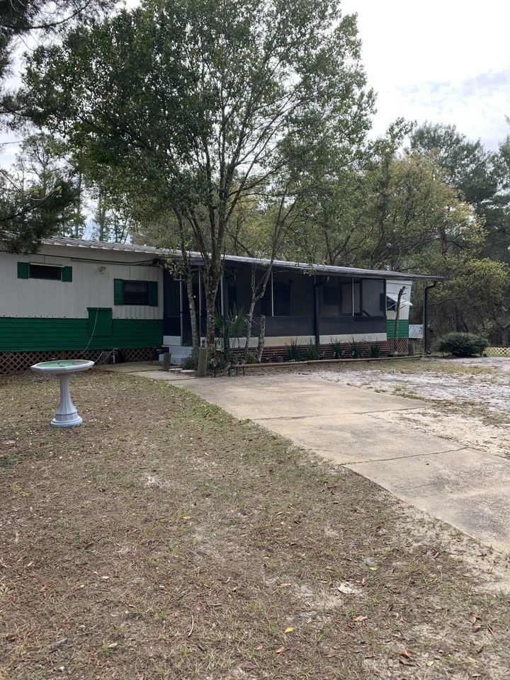 2/1.5 mobile home with an extra room for an office. There is a large screened in porch on the front and a florida room on the back of the house. This home at the end of a long dirt road with plenty of privacy.