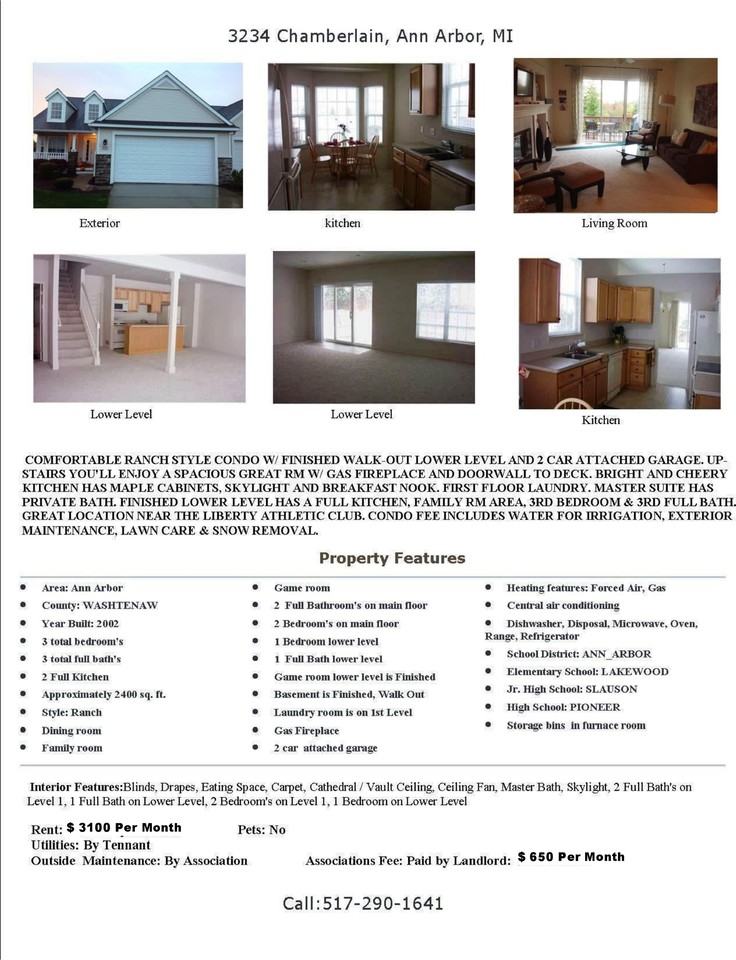3-bedroom apartments at 3234 Chamberlain Cir #3234 cost about 0% less than the average rent price for 3-bedroom apartments in Ann Arbor.