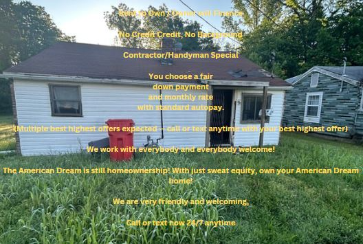 Property Id: 1961013 (NEGOTIABLE) Rent to Own/ Owner financing - handyman special - NO credit check. Homeownership OPPORTUNITY 3 minute away from Downtown Sikeston. Ideal for handymen, contractors, and cleaners. Needs tlc in the living room, kitchen, and bath. STOP renting. Be a homeowner. Act now; a down payment secures keys today! 30-year agreement for deed. You choose a fair down payment and a fair monthly rate. Closing via a third party: title company or notary. Discover Visual Video — 1st File, and Photos — Are the Rest, Along with a Standard Doc File with Tips: www tinyurl com 5a2nku78 Drive by anytime. To view, call or text 573-609-8931 and state your preferred time Quick sale expected; leave a voicemail with your max down payment and max monthly. The American Dream is still homeownership! With just sweat equity, own your American Dream home! Call or text anytime at 573-609-8931