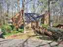 Welcome to this tree house style four bedroom two bath single family home in Holly Springs Crossing. Fantastic neighborhood in the Pope school district. Three level layout with the primary bedroom on the main level and a full walk out basement plus den. The kitchen features stone countertops a breakfast bar and stainless steel appliances. The living room offers vaulted ceilings, exposed beams, skylights and a stone fireplace. Hardwood flooring throughout. Two car side entry garage and a massive deck overlooking a wooded lot. Convenient East Cobb location in the Murdock Dodgen and Pope school districts close to shopping dining and major routes. Unfurnished. Tenant pays all utilities.