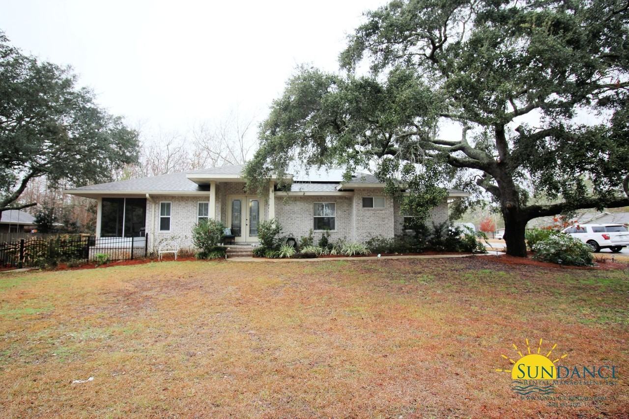 Welcome to this stunning 4-bedroom, 3-bathroom brick home in Mary Esther, conveniently close to Highway 98, shopping, dining, and Navarre's beautiful white-sand beaches. You'll also have easy access to Hurlburt Field AFB. This must-see home features solar energy, an attached 2-car garage, and a driveway for parking. With a split bedroom floor plan, it offers ample space in the main living areas and ensures privacy for the bedrooms. The inviting living room with dual ceiling fans flows seamlessly into the spectacular full kitchen, boasting ample cabinet/counter space, an island, pantry, breakfast bar, stainless appliances, and an oversized refrigerator. Enjoy family meals in the elegant formal dining room with a gorgeous chandelier. The roomy primary suite offers a dreamy experience with dual vanities, a walk-in closet, a stall shower, and a garden tub. Three additional good-sized bedrooms, two full bathrooms (one being a Jack n Jill), and a laundry room with washer/dryer hookups complete the interior layout of this magnificent home. Step into the backyard, and you'll be enchanted by the outdoor oasis with a full privacy fence and a screened-in covered patio, making it the perfect spot to relax or entertain friends and family. Don't miss the chance to call this marvelous property home! Note: No smoking is permitted, and pets may be accepted upon owner approval with a non-refundable pet fee. In addition to the rental amount, all Sundance Rental Management residents are enrolled in the Resident Benefits Package (RBP) for $25.00/month, including liability insurance, credit building to help boost the resident’s credit score with timely rent payments, and much more! The benefits can be found on our website under Tenant FAQ.