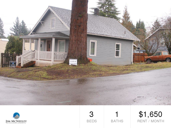 Adorable updated home available in Oregon City!- $500.00 off 1st months' rent - Adorable home available in Oregon City located off of Molalla Avenue on Pearl Street! Recently updated interior and conveniently located near Singer Creek Park, shopping, and transportation! New siding, roof, and windows! $500.00 move in special off 1st month rent __________________ Thank you for choosing Jim McNeeley Real Estate & Property Management, Inc.! **Please do not disturb current occupants** We require you to view the exterior of the property in person before your application will be processed. Do not disturb current occupants. If applying sight-unseen without viewing the interior of the home first, applicants will need to sign a waiver stating such. Renters Insurance is due upon taking possession of the property. Screening Fee: $50 per adult (anyone 18 or older) County: Clackamas Lease Terms: 12 months Date Available for Viewing (subject to change): 01/02/2018 Heat: Forced Air Utilities included in rent: None Utilities paid by tenants: Water & Sewer (City of Oregon City), Electric (PGE), Gas (NWN), Garbage (OC Garbage Co.) Appliances: Stainless Steel Refrigerator & Range Year Built: 1906 Levels: Two Garage: No Fenced: No Vehicle Restrictions: No boat, trailer or RV without approval School District: Oregon City PET POLICY: No cats, 1 dog 15lbs-45lbs, upon approval with $500.00 increased deposit Special Terms: No smoking inside the premises Our application process includes, but is not limited to- * Credit, criminal and eviction check for all tenants 18 and older * Rental history verification for all applicants applying * Verifying your combined household income is at minimum three (3) times the rent amount * Applications may be processed sight-unseen; please call our office for details. *Please view our application process and criteria before applying: http://www.mcneeley.com/application-process INFORMATION NOT GUARANTEED AND SHOULD BE VERIFIED. SQUARE FOOTAGE IS APPROXIMATE & MAY INCLUDE BOTH FINISHED & UNFINISHED AREAS. SCHOOL AVAILABILITY SUBJECT TO CHANGE. ___________________ No Cats Allowed