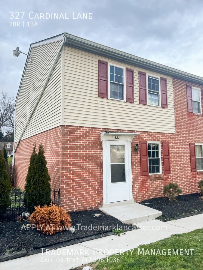 327 Cardinal Lane 2 Bed 1 Bath Town Home This nice end of row town home is available to be your new home! It features off street parking, front and rear entrance, a basement for storage, 1st floor washer/dryer hook ups, a nice rear patio, and more! Tenant pays electric (electric heat). $50 to apply. Please go to www trademarklancaster com to apply and set up showings. Tenant pays electric, water/sewer/trash Min 650 Credit Score and good rental history required