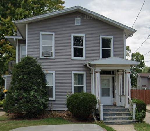 1 bedroom apartment with spacious bedroom and living room near Mercy Hospital. Includes heat & water, private entrance, garage parking, No dogs allowed, but may consider cat for the right tenant. Several large windows providing natural light, including stained glass window.