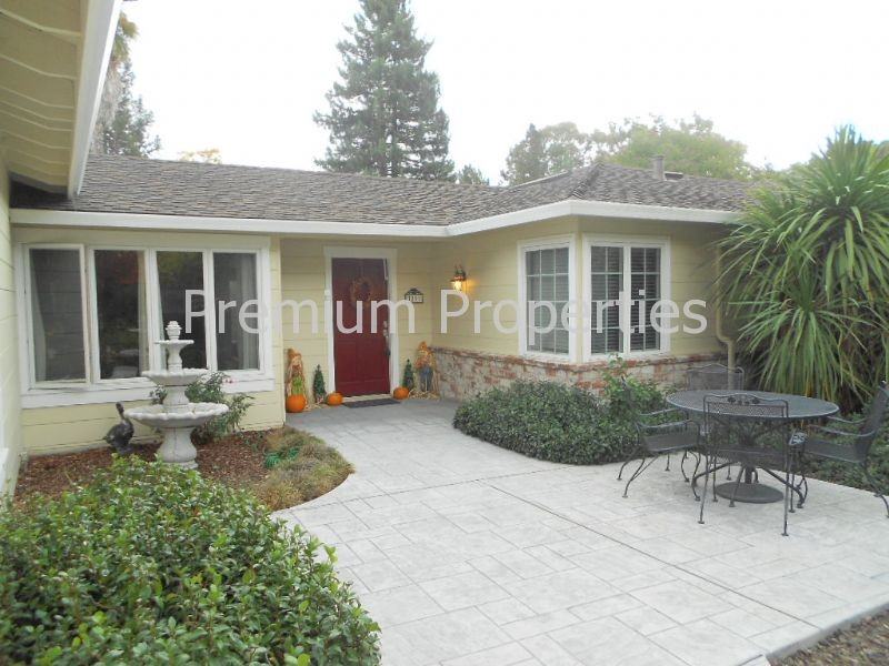 Spectacular Lafayette home with approximately 3000 square feet of living space. Located at the end of a cul-de-sac, as soon as you enter the gate you feel the charm of this home. Large lot has beautiful landscaping in the front yard and the back yard has a large fenced swimming pool, cabana, grass area and patio. Private country feel, but very close to downtown Lafayette, easy freeway access and close to BART. 4 bedrooms (one does not have a closet) and 3 full bathrooms, central heat & air, separate laundry room with washer, dryer, tile flooring and skylight, plus a large storage room next to 2 car attached garage. This home has been beautifully updated and features vaulted ceilings, hardwood flooring throughout and dual pane windows, many windows with views of the hills. Upon entering home, the large living room with windows looking out to back yard has hardwood floors, built in shelves, recessed lighting and fireplace (non-operable). Gourmet kitchen has tile flooring, slab granite counters with a large Eat-in Bar, built in desk area, built in fridge, microwave, gas range, dishwasher and stainless double sink. There is a large eating area with windows to the back yard and a slider to the back patio. Lots of beautiful cabinets and two large pantries. The formal dining room has custom paint and large windows looking out to lovely front patio area. Master Bedroom is at the opposite end of the other bedrooms and features vaulted ceiling, recessed lighting and leads to large Master Bathroom Area with walk-in closet, tile flooring, large tub, granite vanity with double sink and separate large tiled shower. Long hallway with one coat closet and two linen closets leads to 3 bedrooms. Bedroom 2 faces the front of home and has a closet. Bedroom 3 is large and has two closets with mirrored doors. Bathroom 2 is right off the bedroom and has tiled shower stall and vanity with granite counter. Bedroom 4 does not have a closet, but would make a great office, nursery or guest room. It has a door to the back yard and corner windows with views to back yard and hills. Bathroom 3 has custom tile with shower over tub and vanity with granite counter. Close to Lafayette Reservoir and top-rated Lafayette schools! Pool service and Gardener included. Home will be available August 7, 2015. No Smoking. Pets negotiable with owner approval and additional deposit. Call Darcy with Premium Properties @ 925-286-4891.