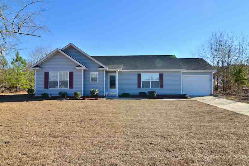 Nice newer 3 bedroom home in Quail Creek subdivision in Lugoff. Half acre lot with 1 car garage. Large open backyard with patio backs up to partially wooded area. Large living room with ceiling fan and laminate hardwood flooring off entry. Spacious kitchen has vinyl floors, light wood cabinets, stove, dishwasher, and refrigerator. Laundry room with included washer and dryer off hall. Master bedroom has 2 closets, ceiling fan, and a large bathroom with tub/shower. Two additional bedrooms and a full bath off the hall. Easy access to Elgin, NE Columbia, Sandhills Shopping. Kershaw County schools.
