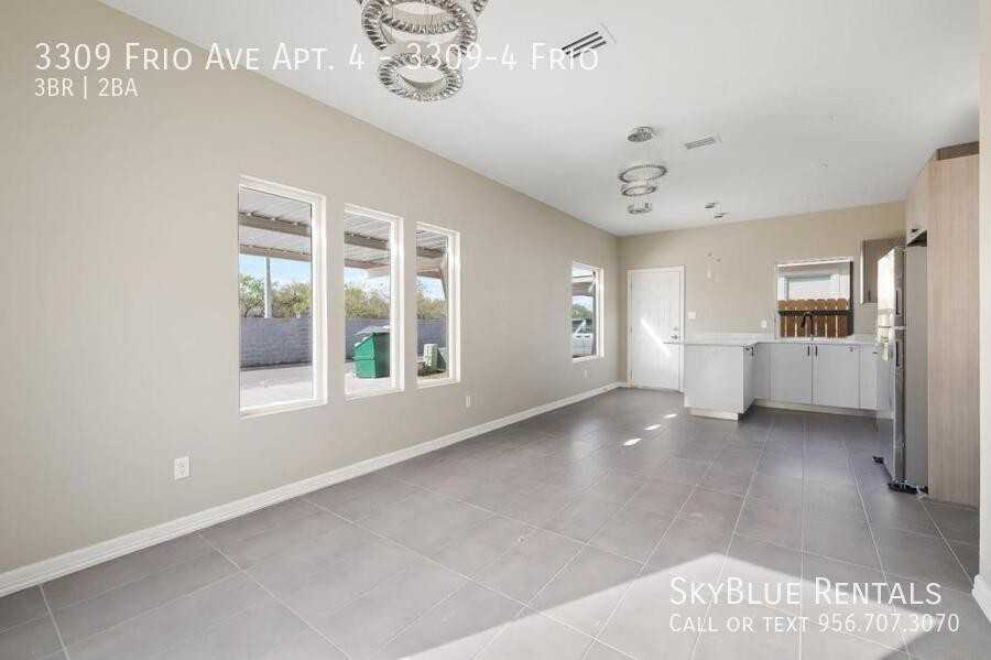 AVAILABLE NOW! APPLY NOW Schedule a Showing or Apply online here -->https tinyurl com 3309-4-Frio -Stonebriar at Trinity Oaks Subdivision- A must see unit with an open layout, modern flooring, Granite Countertops, modern lighting fixtures including recessed lighting throughout the unit. Vaulted ceilings with a fan in living and bedrooms. All bedrooms come with double chrome closet rods, master bathroom has a glass walk-in shower and custom built-in drawers. Located on 29th & Sprague Appliances & Features: Stainless Steel Appliances Full size Washer and Dryer Utilities NOT Included Carport for 2 vehicles Pet Friendly: 20lbs+ $200 and a $75 one time pet fee. 20lbs - $150 and a $65 one time pet fee. MLS #: 446911 Lease Term: 12 mo. lease. Apply Now or Call/Text (956)436-5193 to schedule a showing Year Built: 2022 Rental Assistance: No Fifty-five plus: No Multiplex: No
