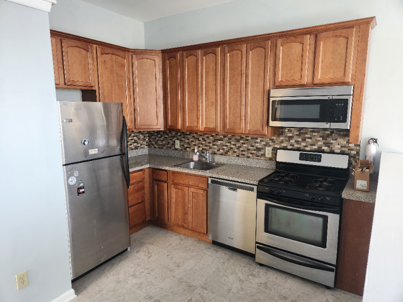 Property Id: 1350900 Modern second floor condo in the heart of Bordentown City. Stainless steel appliance package with 10 foot ceilings. 42 inch cherry cabinets with tile backsplash. In unit washer and dryer. Dishwasher, fridge, over the range microwave included. New wall to wall carpet in bedroom. Open floorplan throughout.