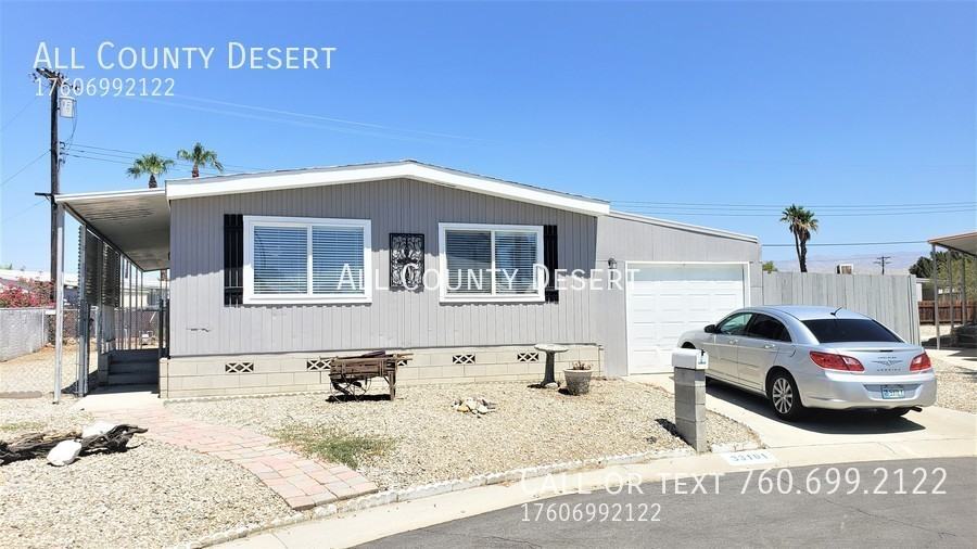 Beautiful, remodeled, FURNISHED mobile available for long term lease in the 55+ Tri Palms Estates and Country Club of Thousand Palms. This lovely home features Brand new hard wood laminate flooring in the common area, new paint, ceiling fans. The large living room opens into a spacious dining room with breakfast bar. Kitchen has all appliances included plus an exit to the patio and carport. Master Bedroom suite with new carpet, walk in closet and remodeled on-suite bath. Large fenced yard with RV parking and storage shed. HOA fees included in the rent. Tenant to pay all utilities. Tenants to have access to numerous community amenities including, pool, clubhouse, tennis, golf, and much more. Schedule an appointment to view this lovely home today. All applicants must pass a comprehensive background screening including income verification and landlord references. Renter's insurance is required. All applicants must have the following: monthly income of three times the monthly rent, no prior evictions, good rental history, no previous felonies, and an acceptable credit score. Call for an appointment today!! ** If you see this home advertised online for less than the rental amount quoted here, the ad is a SCAM. We are the only authorized agent for this property. Please email us a link to any bogus or fraudulent ads so we can report it to the appropriate authorities. Please do NOT send money to anyone who offers keys in exchange for a deposit check - especially if they are out of state. When in doubt, please feel free to contact us. ***
