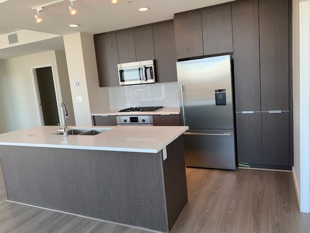 16th Floor East Facing functional floorplan offers 3 bedroom, 2 bathroom and a den. Open kitchen connects dining and living room with masterbedroom on one side and two bedroom and den on the other with one bathroom offering full privacy to all occupants. The unit also come with Central Heating and Cooling to offset the heat we get now in the lower mainland. Kitchen is equipped with high end appliance to tackle different kinds of cooking possibilities. Conveniently located to different highways, restaurants, supermarkets, Costco and many more. Capstan Way Skytrain Station - 7 min walk Yaohan Centre - 10 min walk School Catchments Talmey Elementary (K-7) Macneill Secondary (8-12) 16th Floor - 3333 Sexsmith Road Available: Unfurnished Bedrooms: 3 Bathrooms: 2 Den: 1 Parking: 1 Insuite Laundry Move In Date: Immediately Appliances: Stove/Oven, Exhaust fan, Washer/Dryer, Refrigerator, Dishwasher Interior: 1263sf Minimum 1 Year Lease. Building amenities: Rooftop Garden, indoor swimming pool, indoor basketball court, sauna/steam room, yoga room, theatre room, gym and lounge. Restrictions: No Smoking, No Pets Tenant Insurance Mandatory Tenant is responsible: Electricity and Internet, Central Heating and AC Prospective tenants are not charged any application or processing fee but a Credit and Reference Check will be conducted. Property represented and posted by: 1NE Collective Realty Inc. 215-8600 Cambie Road Richmond BC V6X 4J9 Professionally listed by Anny Yang. Disclaimer: The above information, while deemed to be correct, is not guaranteed. Suites are not furnished as depicted in photos. Pictures and views are of display suites only.