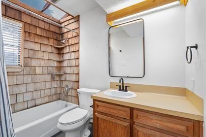 Move in ready! Fabulous, owner-managed 4/2.5 property on Lake Travis surrounded by mature live oaks. Unique and original pops of wood throughout. Sky high ceilings with wood beaming and ample natural light. Cedar showers with a skylight in two of the three bathrooms, ceiling fans throughout with the primary also sporting a soaking tub. Sit out on the wood balcony deck with views of the trees and the lake! Just one street over from lake access. Gated community features include a boat ramp, three swimming pools, tennis courts, and community pavilion. Only 22 miles from Austin and 15 miles from Marble Falls! Pet friendly with pet fee + deposit. Refrigerator included, W/D Connections. The home is on a septic tank and tenants will need to have it flushed at move out (it was done prior to move in).