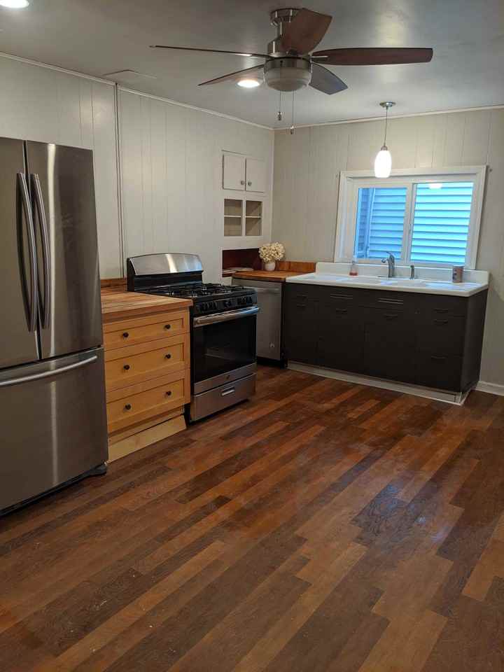 Come home to a 3BR, 1.5 Bathroom house in Greenfield. 1st Floor: Roomy porch opens to a big living room with lovely hardwood floor and great natural light. The large eat-in kitchen has new floors, lighting, stainless steel appliances & a cheery above-sink sliding window. Kohler fixtures on the salvaged sink/drainboard blend farmhouse with functional. Behind the kitchen is your Laundry room and half bath. This space can also be used for more storage. 2nd Floor: Up the steps, you'll find a huge master bedroom with private balcony! The front two bedrooms have new windows. The main bath is spacious, with a black and white harlequin tile floor, new toilet, sink & vanity. ~ Entire home has a new roof, fully updated electric and is equipped with hardwired fire/carbon monoxide detectors for your safety. Ample on street parking. Greenfield offers a quiet small-town feel, yet is close to many schools, employers and attractions.