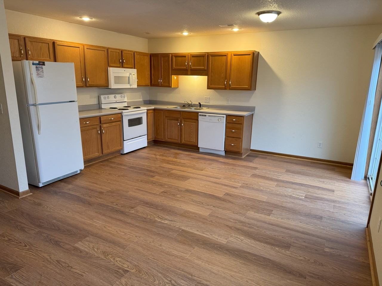 Large 2 bedroom, 1.5 bathroom townhome with garage, all electric unit with washer-dryer hookup. Water, sewer and trash provided. $750 Deposit with approved credit No smoking on property No Pets Deposit and first month's rent due at lease signing. Income verification, credit and background check required