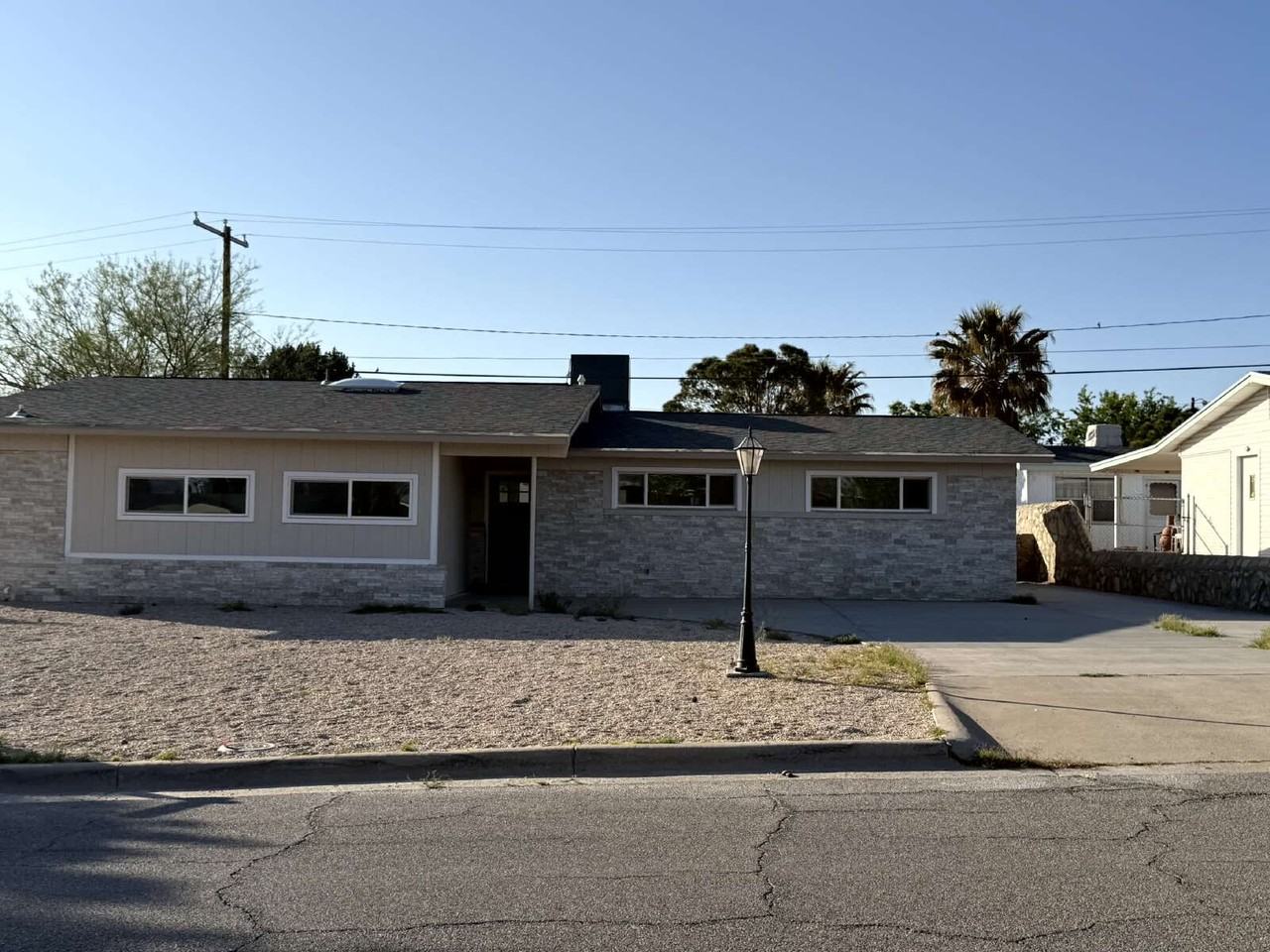 Beautiful completely remodeled and updated home in new condition!2030 sq. ft. of living area, features 3 bedrooms, and open floor plan, 2 bathrooms. NO Carpet new wood laminate floor tile throughout the home, upgraded light fixtures and kitchen appliances. Open kitchen that includes new top of the line stainless steel appliances. Bonus room with wet bar that can be used as a TV room, extra bedroom, office, or anything that will fit your needs. Tankless water heater. Storage shed. Front is low maintenance rock landscaped. Easy access to shopping, entertainment, dining, Fort Bliss, I-10. Pets may be allowed