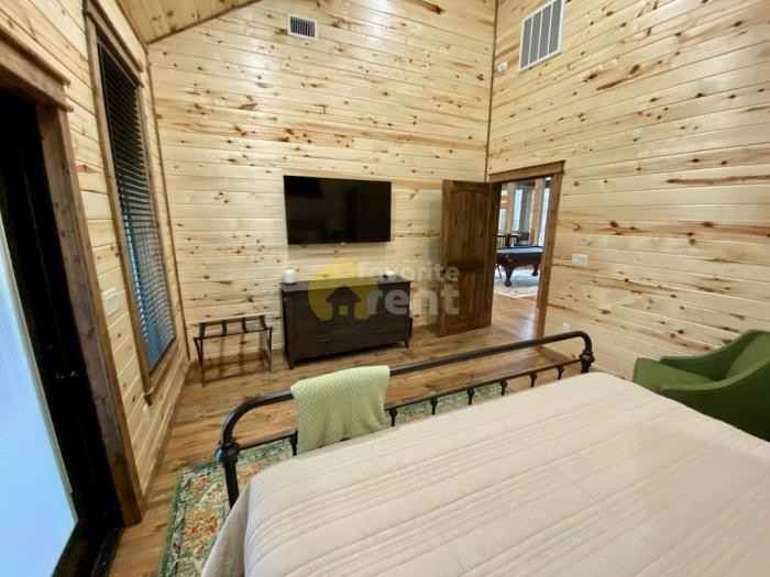 This luxurious, custom built cabin is situated on a nearly 2 acre lot a private road that provides a secluded feel deep in the Ouachita Mountains. Once inside, the first thing you notice is the breathtaking mountain view through the 45\' wall of windows. From there, you will find a well stocked chef\'s kitchen with high end kitchen aid appliances and quartz countertops, private oversized covered decks off of every bedroom, fully covered wrap around deck, eight huge TV\'s inside and out and 4 King bedrooms and custom-built bunk room. Private deck with fire and oversized hot tub. -- LID 45000588