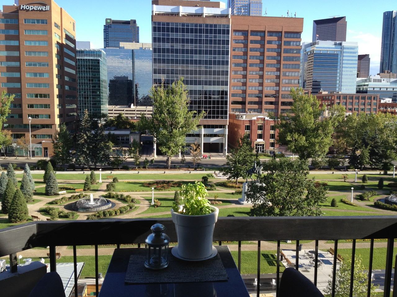 Available for short term or long term: Starting April 1st 2022 (Min 2 months - 1 year lease) Building Facilities: *Indoor salt water swimming pool *large gym *sauna *x1 underground parking space *Storage Lockers - (separate fees approx $30-35/mth) Cozy 525sq' condo top floor with views. has a full separate 1 bedroom, large closets, new comfy queen bed & large wardrobe closet. Along with a separated open concept Kitchen & Living Room with elec fireplace for cozy winter nights, and dining area granite bistro bar top for meals. Full kitchen with fridge/freezer, elec stove & dishwasher, with full bathroom (shower & bath) and walk-in large storage closet at entrance. Full Bathroom with bathtub, shower, toilet, Italian vanity & marble floor. The apt has a large balcony for day or evening dining with a million dollar view of Central Memorial Park with it's colourful lighted fountains, trees, flower garden with Calgary's downtown city lights as a backdrop!br The condo comes with internet/wifi. Also a large 42" flat screen TV, Smart DVD BluRay player with Telus PIK TV with all the local Cable TV channels plus CNN, Showcase, A&E, Bravo, AMC, Netflix, YouTube etc. All dishes, cutlery, coffee maker, toaster, towels and bed linen, even some spices & oils for cooking :) The condo building includes a just renovated heated indoor salt water swimming pool, gym, dry sauna room, and coin laundry facilities (easy access from elevator). ATTENTION!! PLEASE tell me about yourself(es) etc: 1. What rental dates are you wanting to Move-In & Move-Out? 2. Who all will be living there? Single or a couple? (Condo not suitable for more than 2) 3. Are you currently employed in Calgary? 4. Are you currently renting in Calgary? 5. Do you have any landlord & employer references? 6. Do you smoke? 7. Do you have any pets? 8. Do you require parking?