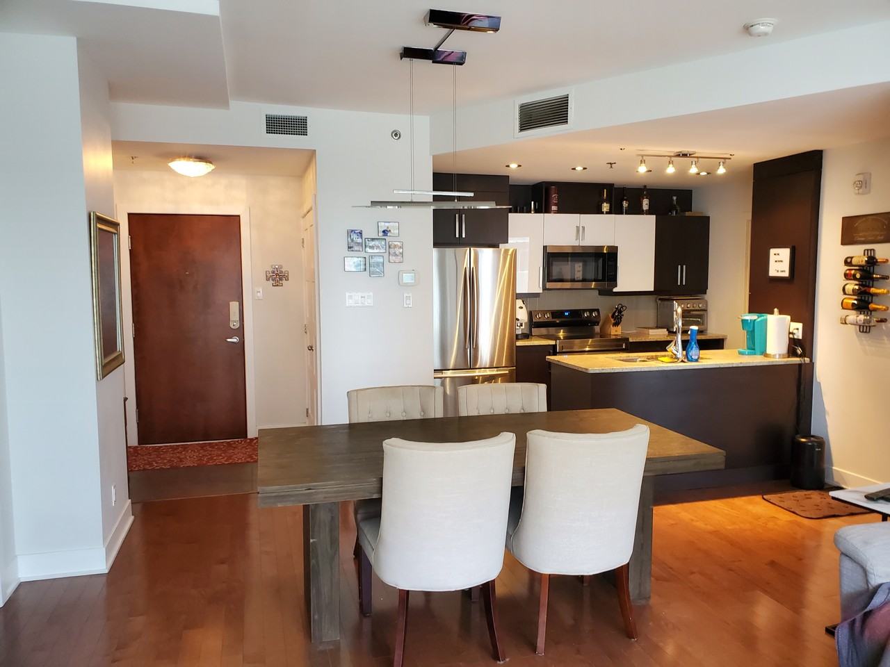 Spectacular condo in the heart of Laval offers 2 bedrooms with an office space turned into a third bedroom! An incredibly bright and open concept living space. property also comes equipped with an indoor parking space and storage unit. Semi furnished condo with all appliances. Outdoor pool and pet friendly.