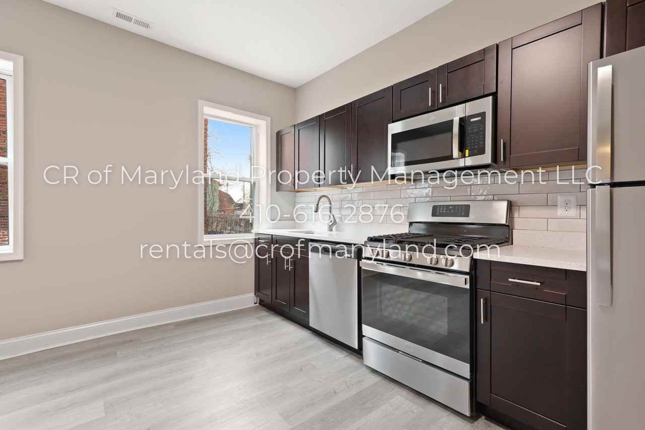 Come check out this beautifully renovated end of group 3BD, 2B home in Baltimore. This home features gorgeous laminated-wood floors throughout with a newly renovated kitchen and brand-new stainless-steel appliances along with brand new washer/dryer! The basement is unfinished but perfect for extra storage space. Like what you see? Give us a call and complete an application. * $25 application fee per adult *Background and Credit required for all occupants 18 years old and older *Minimum Security Deposit = 1 month's rent *Pets allowed max of 50lb with additional security deposit *COMPLETED RENTAL APPLICATION IS REQUIRED TO SCHEDULE A SHOWING* Application link: https app propertyware com pw application # tenant crofmarylandllc To set up a showing please visit this link: https showmojo com 0099257039 listings mapsearch For further questions or application status, please contact CR of Maryland Property Management at 410-842-5946 during business hours or email ****