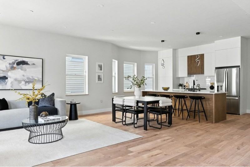 Property Id: 2182625 Welcome to 34 Woodford, a newly built 2/2 offering refined modern living in Dorchester's revitalized Upham's Corner. Designed w/clean architectural lines & upscale finishes, this home combines open space, natural light, and smart functionality, all just minutes from downtown Boston. ADA complaint ✦ Interior Highlights • Open-concept kitchen and living area w/island, and seating for 4 • Stainless appliances, incl gas range, French-door refrig, microwave & dishwasher • Custom cabinetry w/modern black hardware • Primary suite w/large walk-in closet, spa-style bathroom w/dual vanities, oversized walk-in shower & matte black fixtures • 2nd bdrm ideal for office/roommate • Luxury vinyl plank floors, recessed lighting & abundant windows throughout • In-unit laundry, central A/C ✦ Location Less than a 6-minute walk to Upham's Corner Comm Rail (Fairmount Line), 2-stops to South Station w/direct connections to all MBTA subway lines. Convenient to Boston Medical Center, Northeastern University, UMass Boston