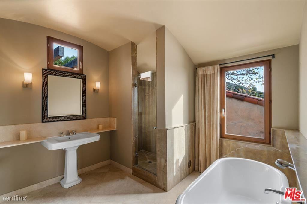 Unique Tuscany style cottage on 25 acres in Western Malibu. Sited 200 feet above the Pacific it overlooks vineyards and olive groves with unobstructed ocean views from Catalina to sunset over Anacapa. Designed by renowned architect Carl Volante, 1000 sq feet of indoor living space artfully encloses a 1000 sq feet cloistered courtyard with pond. Bedroom has high ceiling sloping up to tower window, with adjacent tiled bathroom, claw foot bath and marble shower. Living room and kitchenette have high vaulted cathedral ceiling, split Dutch door to cloister and French door to courtyard. Under-window electric floor heaters and gas log fireplaces in both bedroom and living room. Detached garage, with additional forecourt parking for two cars. Front garden with outdoor chairs under olive tree offers quail, humming birds and whale watching in season, plus spectacular sunsets. High speed internet, electricity, water and landscaping included. Property is secured by gates, security cameras and automatic fire sprinkler system. For the discerning resident this property truly is one of a kind- not another like it this side of the Atlantic. 123190265JP23339591 Please call 310-331-8883 **** Listing provided by Tonya McArthur of Coastal Property Solutions (LA State License 01787933) 310Leases. com