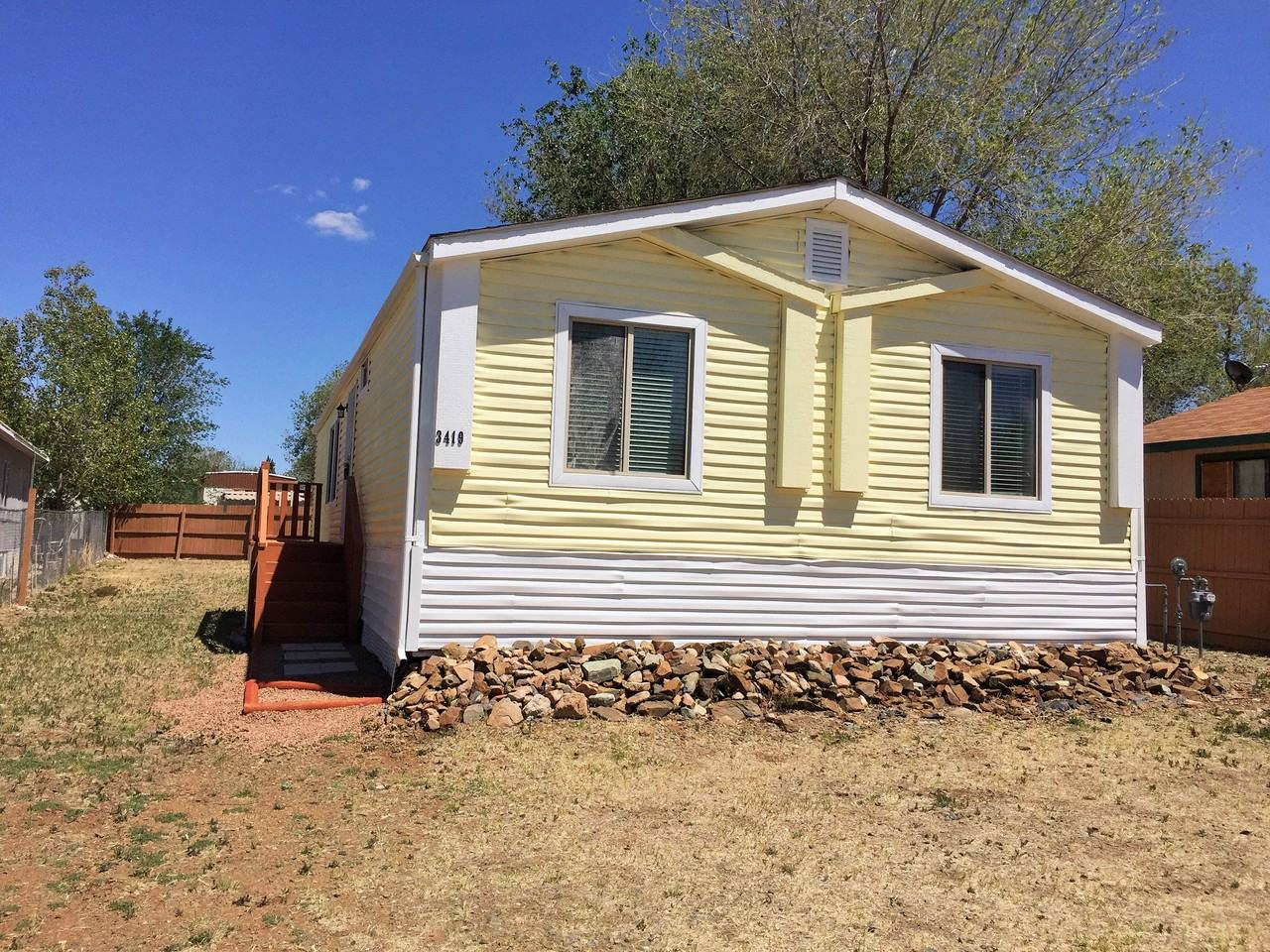 Great manufactured home in Prescott Valley. 3 bedroom 2 bath house with a spacious partially fenced backyard. Newer appliances, painting, and fixtures.