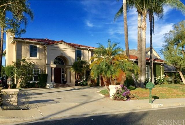 Calabasas Park Estates,Stokes Canyon enclave.VIEWS!Located on a prime street offering picturesque curb appeal and a motor court drive.Tall entry door leads to formal entry with lofted ceilings,marble flooring and double french doors leading to the fully outfitted office.Step down to an elegant living room featuring designer drapes,shutters,and fireplace.Entertain in the spacious dining room.Kitchen offers a center island,wrap around cabinetry,built-in appliances,walk-in pantry,bay window breakfast room and is adjacent to the FR featuring built in entertainment niche,wet bar,FP and a wall of windows and doors.One bedroom and bathroom are located downstairs in a wing of their own,plus a full size outfitted laundry room.Tucked away powder room has a pedestal sink.Upstairs are 4 additional bedrooms,two bedrooms with built-in desk niches share a bathroom,third bedroom offers built in's and a private bathroom and the master suite offers a fireplace,sitting area,french doors,Juliet balcony,and private ensuite bathroom with dual sink vanities,separate soaking tub,glass shower and huge outfitted walk-in closet.Outdoors,the yard offers a stone bordered pool,coordinating stone enhanced BBQ center,raised lounging deck and a grassy play area.HOA offers tennis courts.