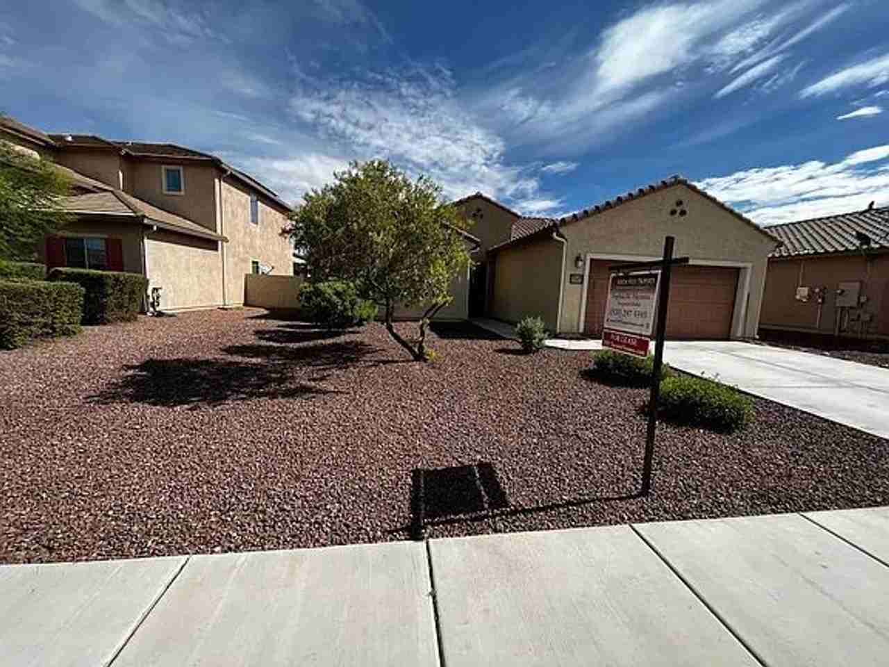 Red Rock located off of I/10 exit. Pulte home with new carpet, stainless steel kitchen appliances, with great room, dining area, kitchen island, lots of natural light from living area, 10 foot ceilings, main bedroom with huge walk in closet, double vanity, garden tub and separate shower. Split bedroom floor plan, large linen closet, laundry room with washer and dryer, large yard, 2 car garage, 2 car driveway, large community pool with slide, and park. Pets will be considered