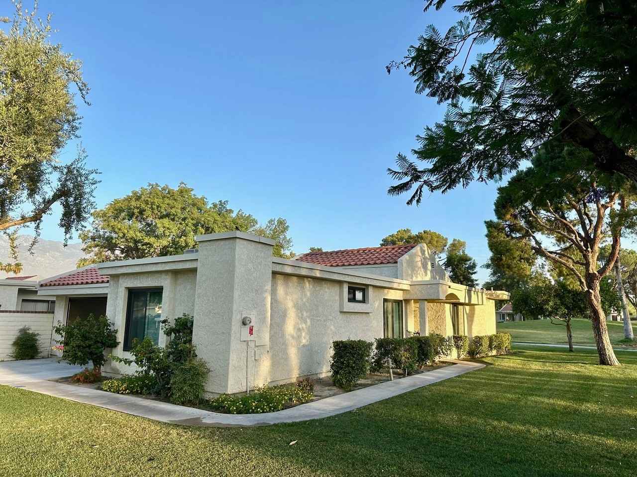 Welcome to your dream condo at Cathedral Canyon Country Club! This spacious end-unit offers a house-like living experience with 2 bedrooms and a bonus room. Updated bathrooms feature step-in tiled showers. Recently remodeled, this condo includes double-pane doors and windows, a new AC compressor, luxury vinyl plank flooring, high-end bedroom carpeting, and new kitchen and bathroom countertops. Enjoy newer appliances, including a refrigerator, water heater, washer, and dryer. Additionally, the garage is equipped with 220V for a car charger, epoxy floors, and ample storage with a wall of cabinets. The community offers an 18-hole golf course, 10 tennis courts (membership required), and multiple swimming pools. Just 15 minutes from Palm Springs Airport, downtown Palm Springs, Rancho Mirage, and El Paseo in Palm Desert, this condo provides stunning mountain and desert vistas and proximity to shopping, dining, entertainment, casinos, and gyms. The community also offers free high-speed internet and cable TV for all units! Furniture is for staging purposes. New drapes and off-white walls enhance the space. Rent includes cable and high-speed internet. Solar power helps reduce summer electric bills. 1 small dog allowed, no cats. Minimum Credit Score of 575 with good credit history - verifiable gross income of 3 times the advertised rent - please see our full list of requirements: https www rentmclean com application-resources