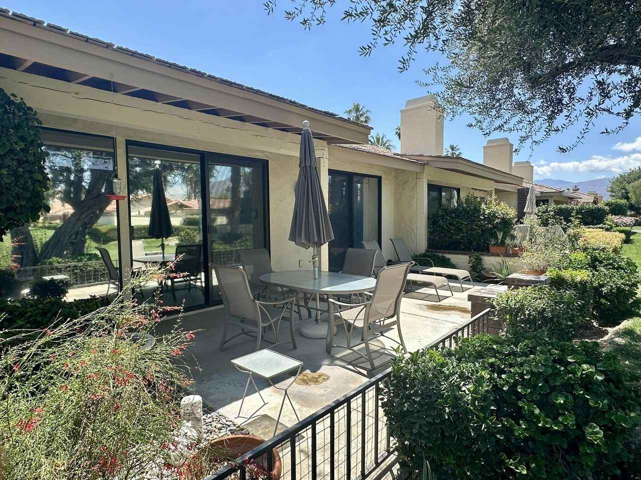 Property Status: Active Beautifully updated 2 bedroom, 2 bath home located in Monterey CC! This light-filled home features an open-concept living area with vaulted ceilings, luxury vinyl plank flooring, and a spacious sectional perfect for entertaining or relaxing. The modern kitchen is equipped with granite countertops, white cabinetry, stainless steel appliances, and ample storage space. The primary bedroom offers direct access to a private patio with serene views of lush landscaping and mountains. Both bedrooms are generously sized, and the bathrooms have been tastefully updated for a fresh, clean feel. Located just steps from the community pool, this condo offers the perfect blend of comfort, style, and convenience-ideal for a relaxing getaway in a peaceful, well-maintained neighborhood. Office Phone: (760) 341-6939 Copyright © 2026 California Desert Association of REALTORS®, Inc. All rights reserved. All information provided by the listing agent/broker is deemed reliable but is not guaranteed and should be independently verified.