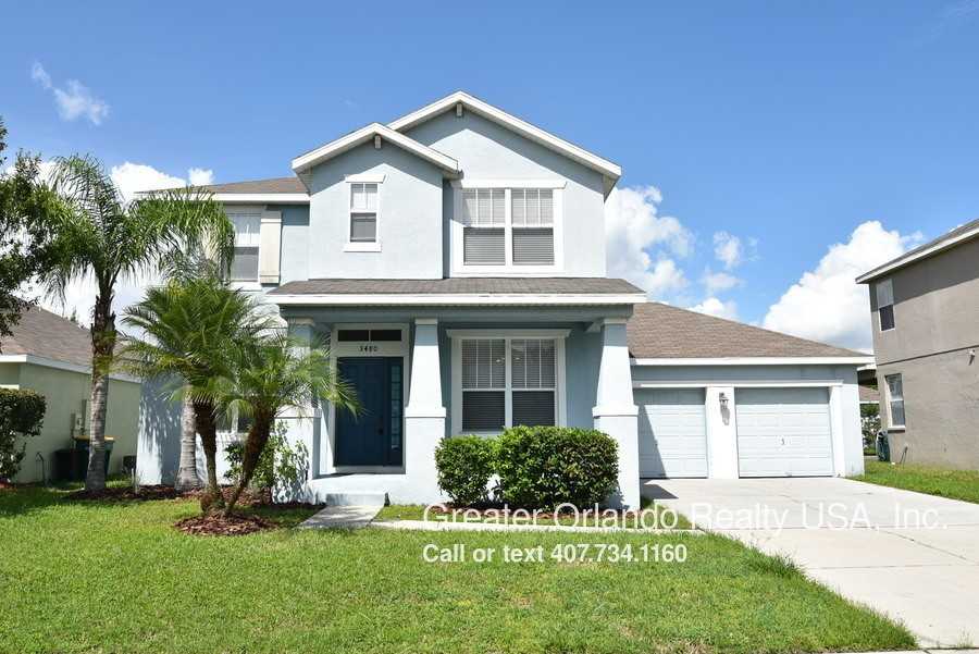 4br 2.5ba in CONCORDE ESTATES, Kissimmee. Freshly painted, just under 2400 sq/ft! Laminate and tile floors on the first floor with FORMAL LIVING ROOM, FORMAL DINING ROOM and kitchen open to the FAMILY ROOM. Spacious kitchen with breakfast nook, eat in space, solid wood cabinets, CORIAN COUNTERS and STAINLESS STEEL APPLIANCES. New carpet on stairs. ALL BEDROOMS on SECOND FLOOR, with master suite boasting WALK-IN CLOSET and master bath with DOUBLE SINKS, CORNER GARDEN TUB and separate glass enclosed shower. Upstairs laundry with WASHER & DRYER included "as-is". Covered rear patio, irrigation system on reclaimed water. COMMUNITY FEATURES include: Resort style community pool, clubhouse, fitness center, playgrounds and tennis court. Location is near to Lake Toho. Priced to rent quickly. Drive by first, then schedule appointment to view inside. *Exterior painting to be done within next 60 days.* Sorry, no pets. Don't wait on this one! Click the link below to schedule a showing: https://showmojo.com/l/d989c59063 Cats Not Allowed Clubhouse Community Pool Dogs Not Allowed Playgrounds Tennis Courts