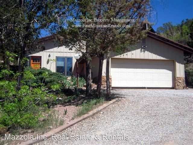 2 Bedroom, 2 Bathroom Home in Tijeras, NM. - 8-month lease only, Oct 2016 - May 2017. Close in Tijeras location but secluded on 9 acres, adjoining Nation Forest. Property does not map correctly and is 1 1/2 miles South of I-40 off of Primera Agua. This contemporary 2 bedroom home has walls of glass, slate tile floors. Master bedroom with stone fireplace and stunning custom remodeled bathroom, large walk-in closet. Dining room and spacious kitchen, all appliances. Stone fireplace in open living area. Large brick patio, 2-car garage, private gated access. Call Liz for more information or a showing, (505) 250-1250.