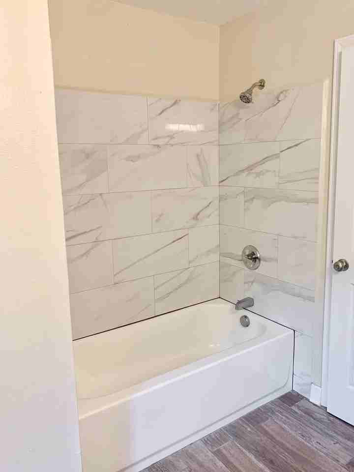 - Wood-look tile flooring