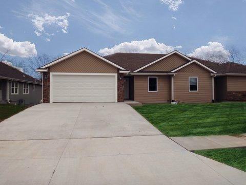 It sits in Acquarian Acres, near Lake Shawnee. Beautiful decor, quality construction, cherry kitchen cabinets, walk-in pantry, large master suite with covered ceiling, master bath and walk-in closet. Deck overlooks peaceful wooded area and creek - great for relaxation! Double car attached garage and full walk out basement with lots of storage!.... Quick access to highways, shopping and eateries. Ball diamonds, fishing, skiing, yacht club, etc. just down the street! Secluded neighborhood. Call today to view this duplex as it will go fast! **Availability date subject to change** **Disclaimer: Please verify all school districts with appropriate school district office**