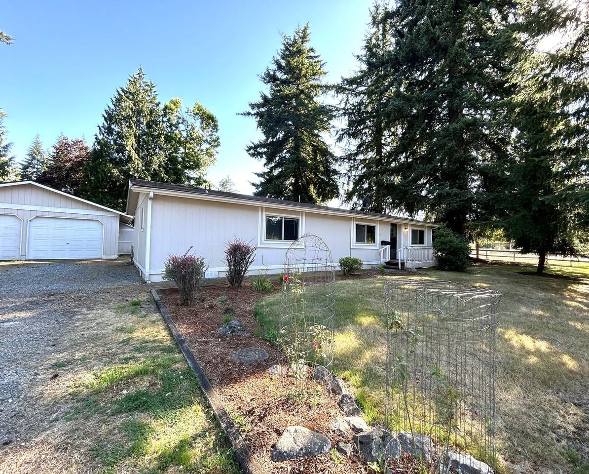 2 bedroom 2 bath with large front & back yard. Home is approx. 1,248 Sq. Ft with a spacious living/family room, Kitchen with appliances and dining room, plus a small desk & bar area for additional seating. Each bedroom has a large closet as well as an en suite. Laundry room with W/D included. All new flooring and paint throughout the home. The back yard is fenced with a large deck great for entertaining/relaxing. Plenty of additional storage with a 660 sq. ft. detached garage and storage shed. Pets negotiable with additional deposit /No Smoking Please Drive by this location before calling to schedule a showing. DO NOT APPLY UNTIL YOU HAVE VIEWED THE INSIDE WITH AN AGENT!