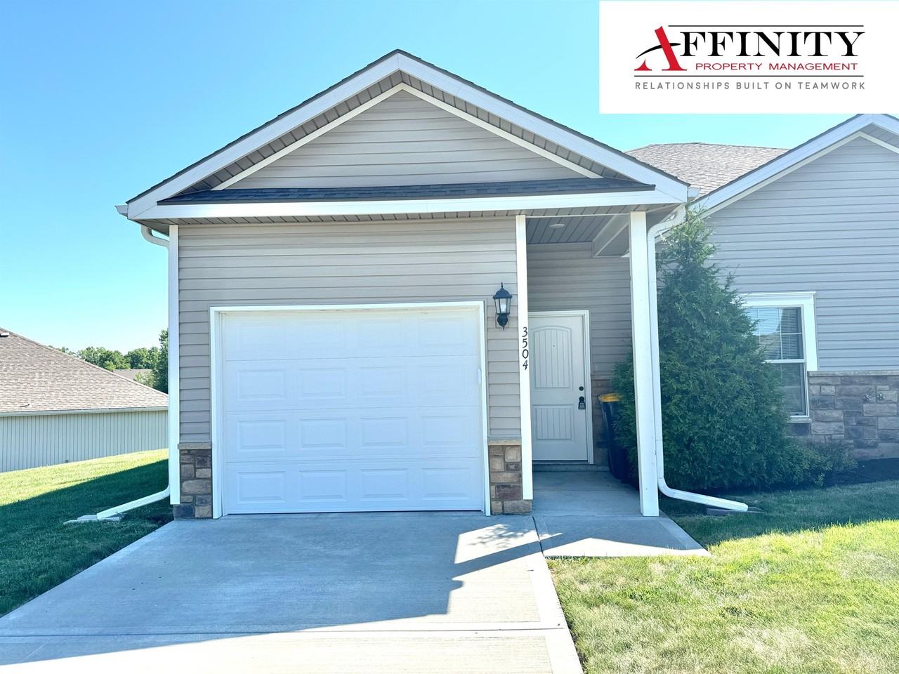 Gorgeous Greenhills, ranch style, side by side duplex. Located in the Platte County school district. 3 Bedroom, 2 bath. Open concept kitchen/living room accented by high ceilings and updated finishes. Sliding rear patio door opens to outdoor seating area. Kitchen comes complete with stainless steel fridge, electric range, dishwasher and microwave. Large primary suite with attached large walk in closet and private bath. Double vanity and walk in shower complete this spacious bath. Washer/dryer hook ups . Attached, single car, garage. Private entry. Lawncare included. Duplex Non-smoking No Pets Ranch style duplex with attached garage.