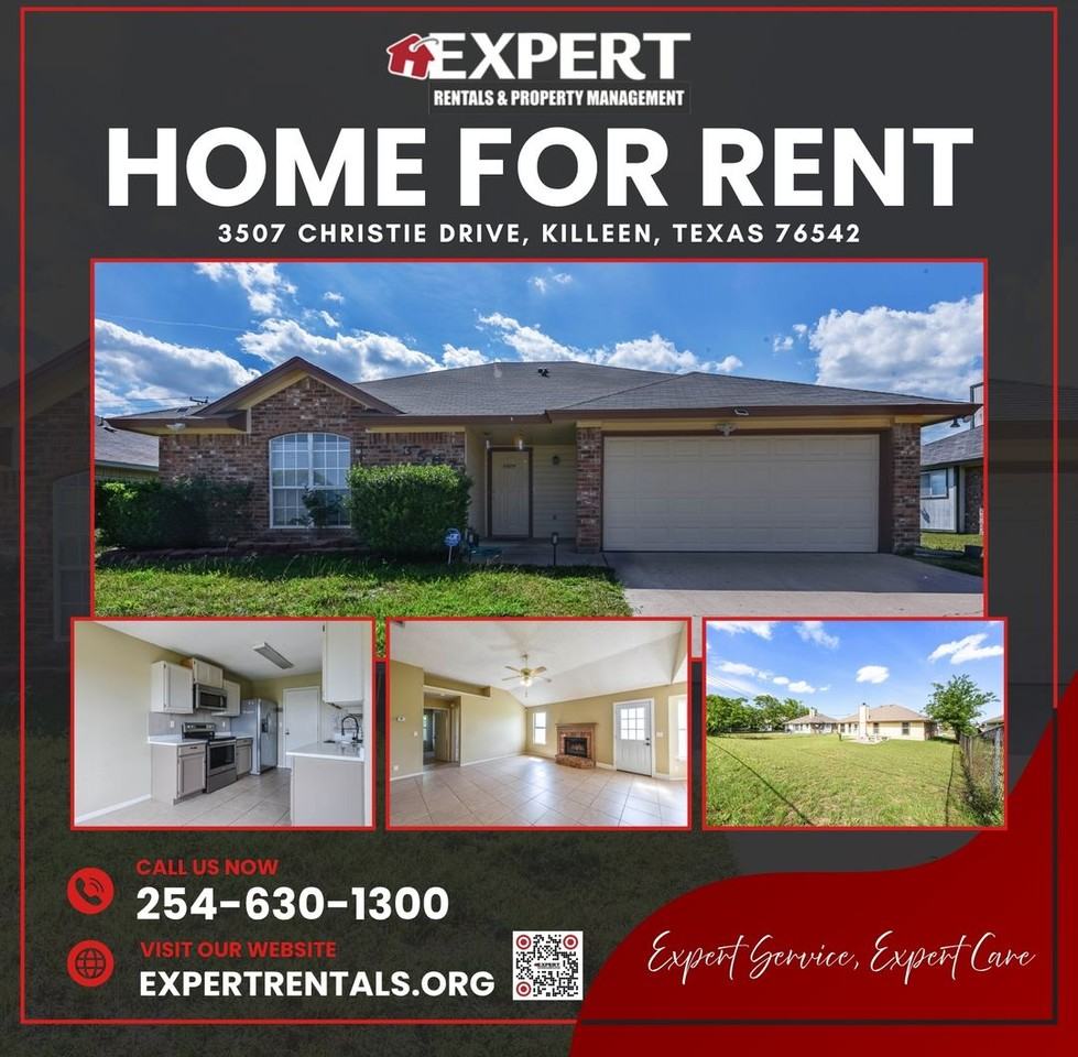 Welcome to 3507 Christie Dr, 3-bedroom, 2-bath home located near Lions Gate Park in Killeen, TX. This charming residence offers 1,038 square feet of living space, featuring tile flooring throughout the main areas and cozy carpeting in each of the bedrooms. The living area is highlighted by a wood-burning fireplace and abundant natural light, creating a warm and comfortable atmosphere. The breakfast area, located just off the kitchen, boasts a vast number of cabinets and a convenient pass-through window to the living room, making it ideal for both cooking and entertaining. The primary bedroom is a serene retreat, offering high ceilings, a large window for plenty of natural light, and a private bathroom with tile flooring. The home is situated on a 7,841 square foot lot, providing ample outdoor space for relaxation and enjoyment. Conveniently located near Lions Gate Park and with easy access to Highway 190/I-14, this home offers both comfort and convenience. **KEEP MONEY IN YOUR POCKET WITH SECURITY DEPOSIT ALTERNATIVE POWERED BY OBLIGO**