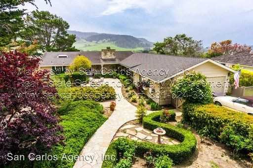 (RLNE1854262) (MILLB) San Carlos Agency presents this lovely, furnished, two-bedroom, two-and-a-half bath home that overlooks the hills south of Carmel and also has a view of Point Lobos from its wrap-around balcony deck. Enter into a spacious living room with gas log fireplace, wide-plank, hardwood floors, open beam, vaulted ceilings and sliding glass doors that lead to the balcony deck with accompanying views. The kitchen is to the left with tile floors and counters, stainless steel appliances including a side-by-side refrigerator, dishwasher, gas range, disposal and microwave. A service bar separates the kitchen from the dining area also with tile floors and sliding glass door to the balcony deck. The master bedroom has wood floors and double closets. The en suite master bath is tiled with bathtub and separate shower. The guest bedroom also has hardwood floors with an en suite bath. The guest bath has tile floors and counter with a shower. There is a large laundry room with clothes washer and dryer left as a courtesy. Connected to the laundry room is another half-bath. Parking for two cars available in the double car garage. There is a one-bedroom suite below the main house which has its own entrance and will be rented separately. Pets negotiable. NO SMOKING.