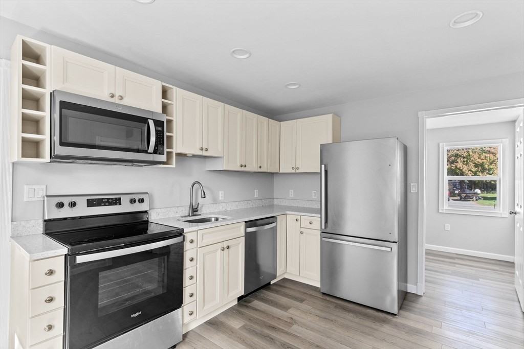 This oversized 1 bed plus Den/Office has been recently renovated and it is brand new on the inside! The floors are stylish luxury vinyl plank throughout, the large eat-in kitchen has brand new white kitchen cabinets and quartz counters with stainless steel appliances, and the bathroom is also brand new and includes a large shower and beautiful farmhouse sink! Brand new washer and dryer in unit as well, this unit includes 1 car garage parking and a large space in the driveway for additional cars. Make use of the large shared backyard during the summer months, very private and serene! Tenant pays all utilities, gas heat is new forced hot air, and a new hot water tank. DON'T APPLY THROUGH AVAIL. CALL/TEXT US AT 617-765-4219. Listing is provided by Melanie Wright - Legacy Homes & Estates ****