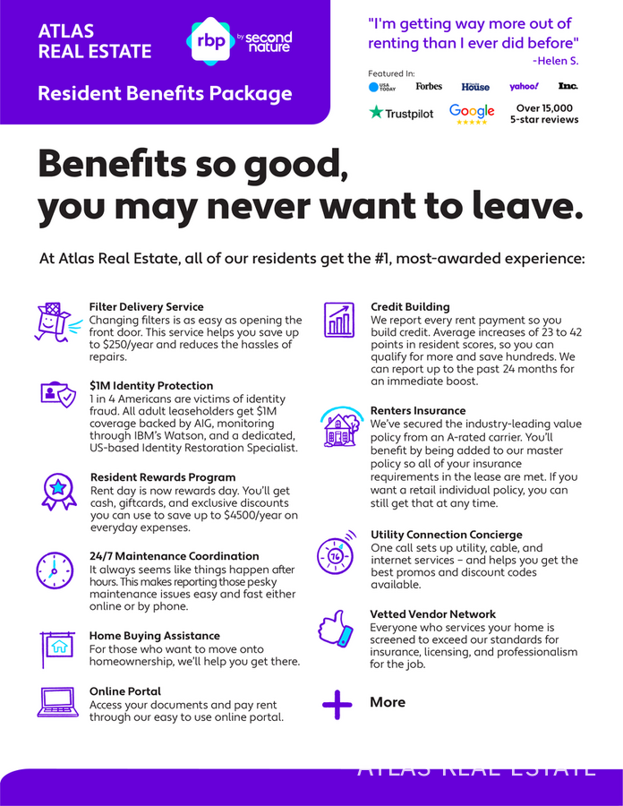 Chris Nehren **** 303-558-8656 www realatlas com Welcome to 3540 W 4650 S, West Valley City, UT 84119 Monthly Fees • Total Monthly Rent: $2,364.99 • Base Rent: $2,295.00 • Resident Benefit Package: $60.00 • Utility Management Fee: $9.99 (Additional fees may apply for pets, sustainability programs, taxes, and utilities.) Security Deposit • As low as one month’s rent for highly qualified applicants • Deposit alternative available for $2,295.00 • Leasing admin fee of $125.00 due at move-in Atlas Real Estate has partnered with Jetty to offer an affordable alternative to upfront cash security deposits. Approved residents can choose between paying a security deposit equal to one (1) month’s rent (On approved Credit) OR purchase a deposit replacement policy with Jetty at a fraction of the upfront cost. If a bond is issued for less than 100%, additional funds may be due at move-in. Resident Benefits Package (RBP) • Smart thermostat and smart lock features • Quarterly air filter delivery • Utility management • Renter’s insurance included Pet Policy • $300 non-refundable fee per pet • Monthly pet rent starting at $35, based on PetScreening • PetScreening required for all applicants, including ESAs and service animals Application Requirements • All applicants 18 and older must apply • Background and credit check required • Proof of income of at least 3 times the monthly rent • No evictions in the last 5 years • No outstanding landlord debt • Bankruptcies may be considered • Additional documents may be required based on screening Additional Information • Atlas Real Estate complies with all federal, state, and local housing laws • Pricing and photos may change • In-person tours encouraged using self-showing technology or scheduled appointment • Payments are not accepted via Venmo, Zelle, CashApp, wire transfers, money orders, or similar platforms • Avoid scams; Atlas does not list homes on or Facebook Marketplace For questions or to schedule a tour, call 303-242-8980, ext. 5. Chris Nehren **** 303-558-8656 www realatlas com Professionally managed by Atlas Real Estate, LLC.