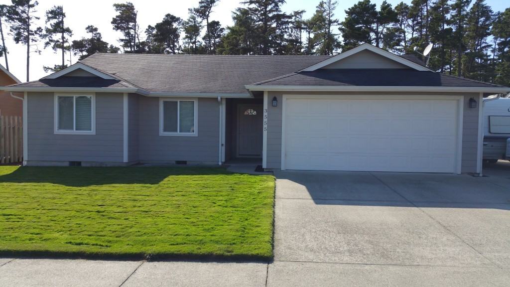 Open House Saturday 9/12/15 10:00 am - 2:00 pm Lovely 3 bedroom/2 bath home conveniently located close to schools and shopping. The home features a single level floor plan. The living room and kitchen have vaulted ceilings. Master bedroom features a large walk in closet and bathroom with double sinks. Recent painting has the home looking great inside and out. Two car garage with plenty of storage. Large concrete area next to the garage is approximately 14' x 40' and has RV hookups. The lawn is beautiful and yard maintenance is included. The home backs up to a green space complete with native rhododendrons, huckleberries, and shore pines.